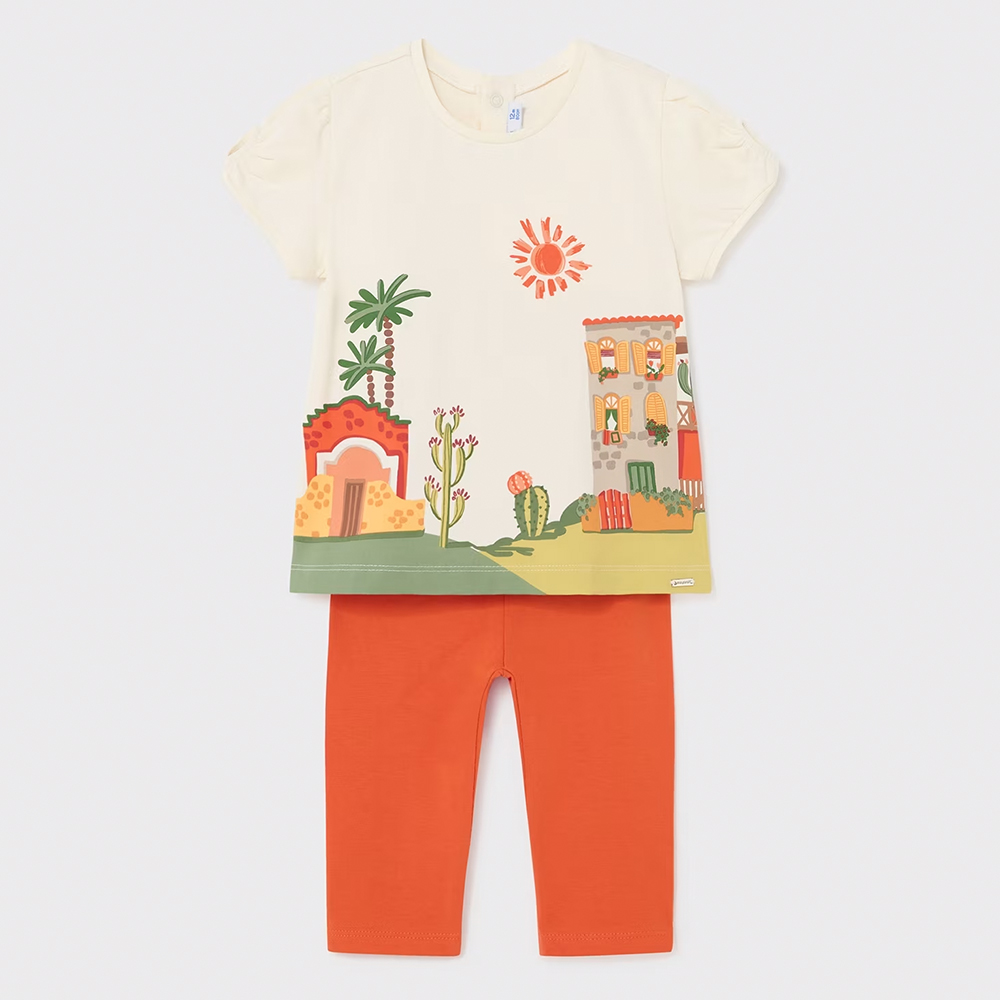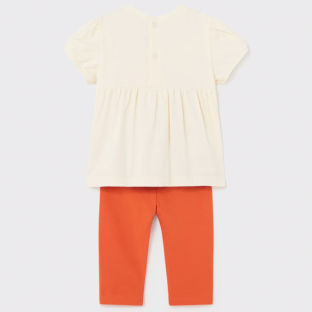 Погрузитесь в мир стиля и комфорта с этим трогательным трикотажным комплектом для девочек от известного испанского бренда Mayoral.